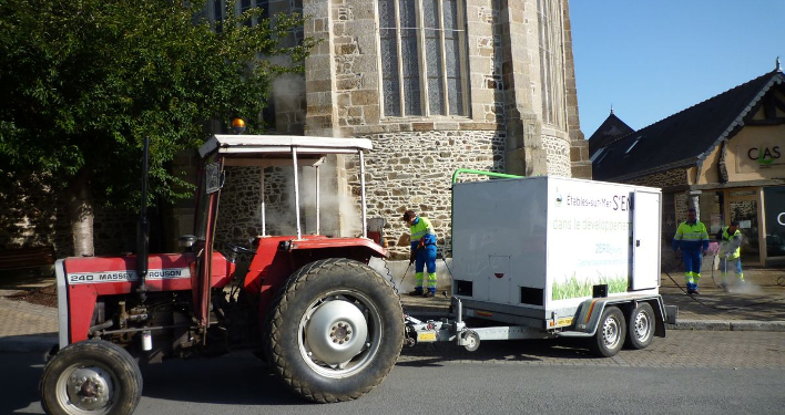 Le désherbeur thermique à l’eau chaude ou à vapeur provoque l’arrêt de l’activité biologique de la plante, qui noircit et meurt naturellement.